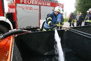 Um die Wasserversorgung sicherzustellen, sollte mit Tanklöschfahrzeugen ein sogenannter Pendelverkehr eingerichtet werden. Dazu wurden am Übungsort große, mehrere tausend Liter fassende Faltbehälter aufgebaut, aus denen die Strahlrohre der Löschmannschaften gespeist wurden. Die Tanklöschfahrzeuge entnahmen dazu Löschwasser aus einem Hydranten im Industriegebiet und lieferten ihre nasse Fracht an diesem Übergabepunkt ab.