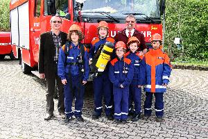 Ein Höhepunkt vor allem für die kleine Besucher war sicherlich auch die Schauübung der Jugendfeuerwehr am Sonntag: Mit Blaulicht und Martinshorn rückten die Jugendlichen an, um ein Holzfeuer vor dem Gemeindebauhof zu löschen. Auch wenn dabei das Wetter nicht immer mitspielte, hatten die Jugendfeuerwehrleute einen riesen Spaß.