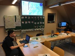 Die Übung war sehr anspruchsvoll. So mussten in 3 Stunden insgesamt 44 Einsätze in der Einsatzsoftware angelegt, priorisiert, lokalisiert, disponiert bzw. den Einsatzfahrzeugen zugewiesen und über Funk übermittelt werden. Ebenso erfolgte die Dokumentation der Einsätze, der Lagemeldungen, der Rückmeldungen von den Einsatzstellen, der Nachforderungen von Einsatzmitteln und -kräften bis zum Abschluss der jeweiligen Einsätze. Eingebaut war auch ein Brandalarm, der vorrangig abzuarbeiten war, sowie Notrufe, die direkt in der kommunalen Befehlsstelle in Wiesbach aufliefen und auch eingearbeitet werden mussten.