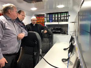 "Uns war es wichtig, dass das Fahrzeug vor der Inbetriebnahme unter den Schutz des heiligen Florian gestellt wird.", sagte Löschbezirksführer Stephan Rein mit Blick auf Pastor Johannes Schuligen, der nach einem gemeinsamen Gebet das Fahrzeug segnete.