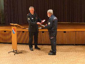 Der Brandinspekteur des Landkreises Neunkirchen, Michael Sieslack, ehrte Manuel Braun und Dominik Schallmo mit dem Bronzen Ehrenzeichen am Bande für 25 Jahre Dienst in der Feuerwehr, Thorsten Zawar erhielt für 35 Jahre Mitgliedschaft das Silberne Ehrenzeichen am Bande.