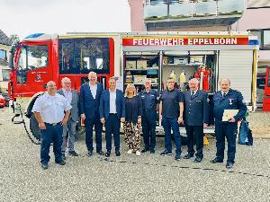 Im Rahmen des Jubiläums würdigten zahlreiche Ehrengäste, allen voran Bürgermeister und Chef der Wehr Dr. Andreas Feld die Leistungen und das Engagement der Kameradinnen und Kameraden. Der Dank galt allen Aktiven, der Alters- und Ehrenabteilung sowie den Familien, die hinter den Einsatzkräften stehen und so deren ehrenamtliche Arbeit ermöglichen. Daniela Feld überreichte als Kreisbeigeordnete ein Präsent zum Jubiläum an Löschbezirksführer Stephan Rein, die stellvertretende LAndesjugendleiterin Kerstin Schaak brachte ein Geschenk zum Jubiläum der Jugendfeuerwehr mit.