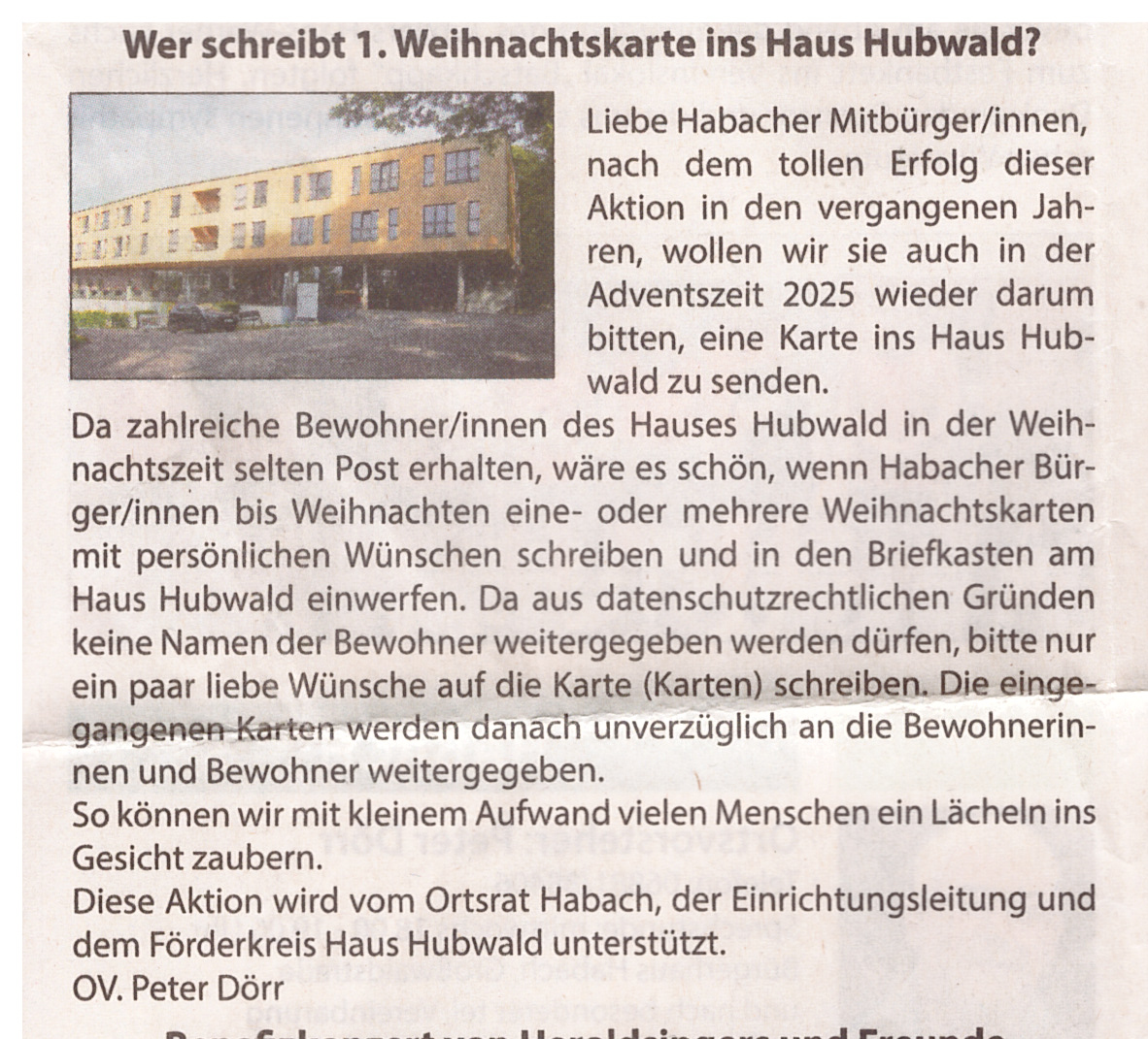 Löschbezirk Habach unterstützt Weihnachtskarten-Aktion des Förderkreis Haus Hubwald e.V.