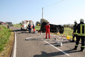 Der Familien-Transporter, in dem eine 4-köpfige Familie unterwegs war, überschlug sich und kippte in den Straßengraben. Der Unfallverursacher rutschte trotz gebrochener Achse noch rund 200 Meter weiter, bevor er zum Stehen kam. Zeugen des Unfalls alarmierten sofort die Rettungskräfte.