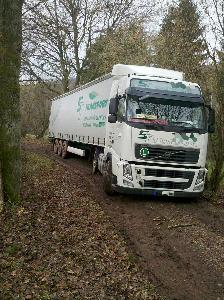 Also wurde über die Polizei ein Bergungsunternehmen angefordert. Aber als die Experten endlich eintrafen, gelang es auch ihnen nicht, den Sattelzug zurück auf die Straße zu bringen. Ein ortsansässiges Bauunternehmen brachte schließlich die Lösung: Ein vollbeladener 3-achser Kipper hatte genügend Kraft, den schweren Lkw wieder flott zu machen. Die Bergungsarbeiten und der Einsatz der Feuerwehr dauerten bis nach 21:00 Uhr am Abend.