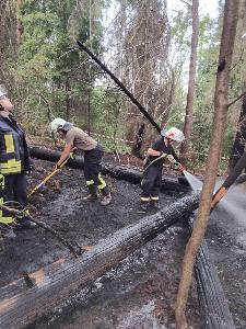 Nach Abschluss des Waldbrandeinsatzes am späten Montagabend führte die Freiwillige Feuerwehr Neunkirchen in der Nacht zum Dienstag und am Dienstagmorgen zwei Nachschauen an den Brandherden durch. Dabei konnten in der Nacht nochmal mehrere Glutnester abgelöscht werden.