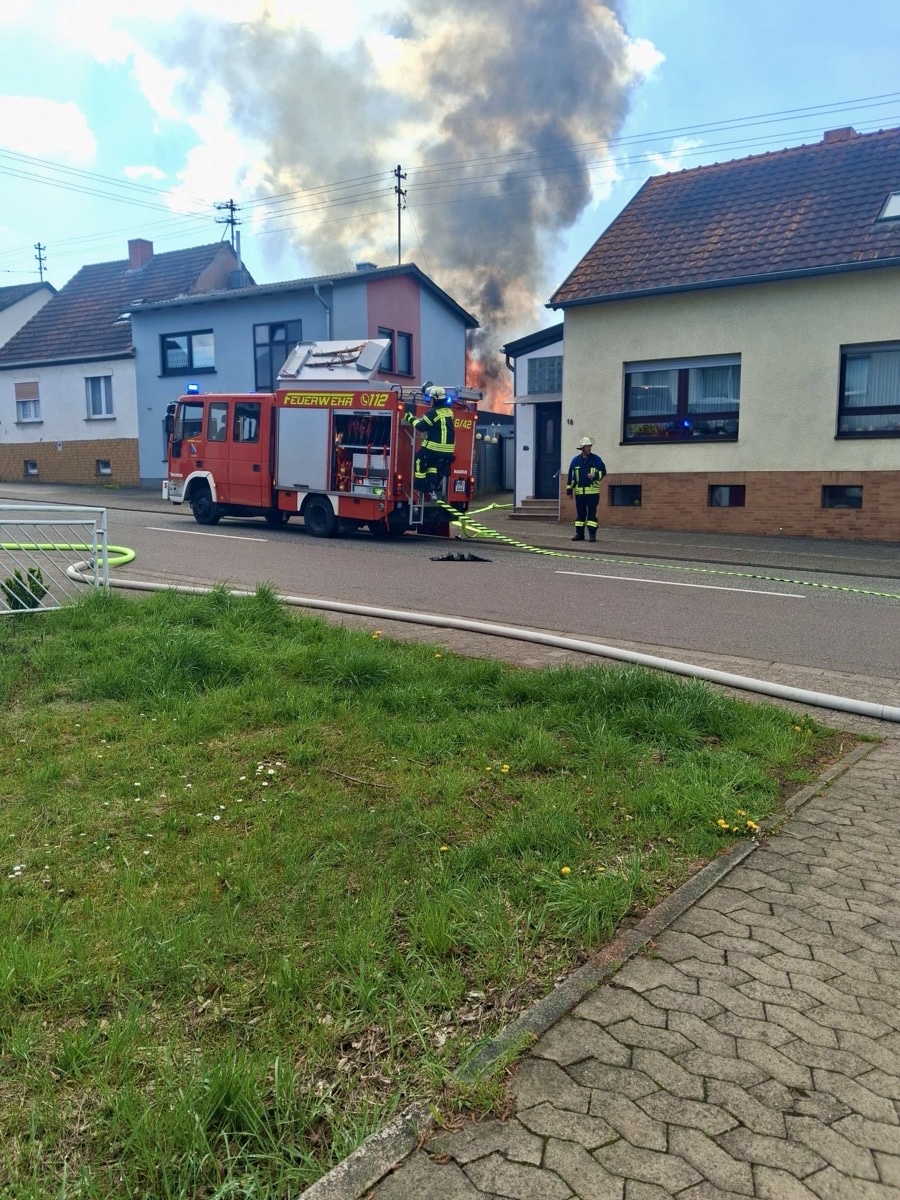 Umgehend wurden neben dem Löschbezirk Wiesbach auch die Einheiten aus Eppelborn, Habach und Humes-Hierscheid zur Einsatzstelle alarmiert. Beim Eintreffen der Feuerwehr fanden die Einsatzkräfte eine in Vollbrand stehende Doppelgarage vor, an die ausserdem noch ein Zimmer und eine Küche angebaut waren. Die Flammen hatten zu diesem Zeitpunkt ausserdem schon auf ein benachbartes Gartenhaus auf dem Nachbargrundstück übergegriffen. Im weiteren Verlauf wurde zusätzlich der Löschbezirk Bubach-Calmesweiler nachalarmiert, um über ausreichend Atemschutzgeräteträger vor Ort zu verfügen.