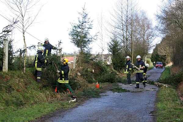 Gegen 21:55 Uhr musste der Löschbezirk Habach am 29. Februar 2008 zu einem Sturmeinsatz ausrücken: Auf der L301 war in Höhe des Sportplatzes ein Baum durch die starken Windböen umgefallen und versperrte die Landstraße kurz vor dem Ortseingang von Habach. Mit einer Kettensäge wurde der Baum von den Einsatzkräften zerlegt und die Fahrbahn gereinigt.