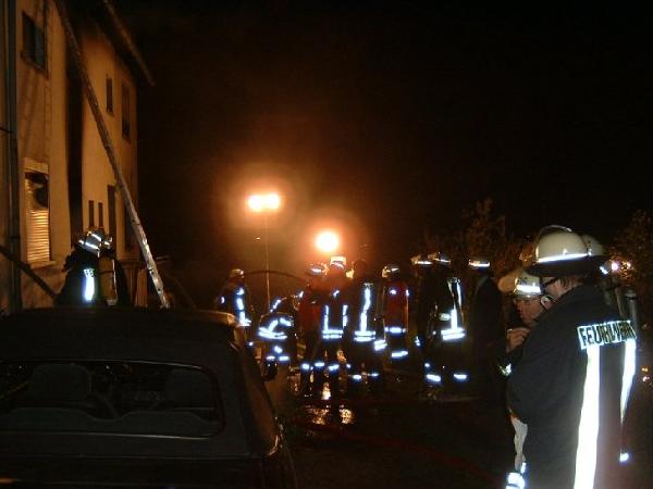 Beim Eintreffen stelle sich heraus, dass sich das Treppenhaus bereits im Vollbrand befindet, ebenso ein nebenliegender Wohnraum. Aufgrund des abzusehenden hohen Bedarfs an Atemschutzgeräteträgern wurde der Löschbezirk Eppelborn um 02:14 Uhr vom Einsatzleiter zur Einsatzstelle nachalarmiert.