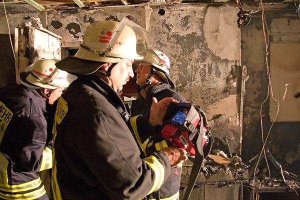 Der gefährliche Brandrauch wurde anschließend mit zwei Überdrucklüftern aus dem Gebäude gedrückt. Mit der Wärmebildkamera der Drehleiter aus Illingen, die ebenfalls alarmiert war, wurden die Räume mehrfach nach Hitze- und Brandnestern abgesucht. Für notwendige Nachlöscharbeiten blieben Kräfte aus dem Löschbezirk Bubach-Calmesweiler vor Ort. Bis gegen 11:00 Uhr am folgenden Morgen unterstützten sie die Arbeiten der Polizei und leuchteten die Einsatzstelle aus.