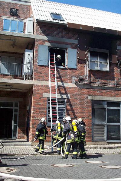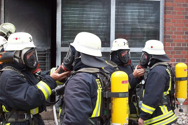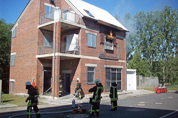 Der zweite Tag stand ganz im Zeichen von Einsatzübungen. In sieben Übungslagen wurden Kellerbrände, Küchenbrände, Zimmerbrände, Gaszählerbrände, Angriffswege über Treppenraum und über tragbare Leitern und Menschenrettung abgearbeitet. Große Hitze, Sichtweiten von nur wenigen Zentimetern und das unbekannte Gebäude kamen dabei realen Einsatzsituationen sehr nah. Immer dabei: Ausbilder der Landesfeuerwehrschule, die bei Gefahr sofort eingreifen können. Mehr als 25 Kilogramm wiegt die Schutzausrüstung eines Feuerwehrmanns, dazu musste zusätzliche Ausrüstung wie Axt und Schlauch mitgenommen werden. Beim Retten der 80 Kilogramm schweren Übungspuppen hatten viele Lehrgangsteilnehmer ihre persönlichen Leistungsgrenzen erreicht.