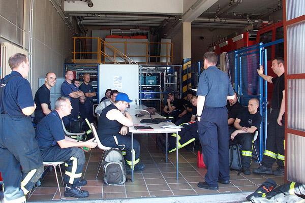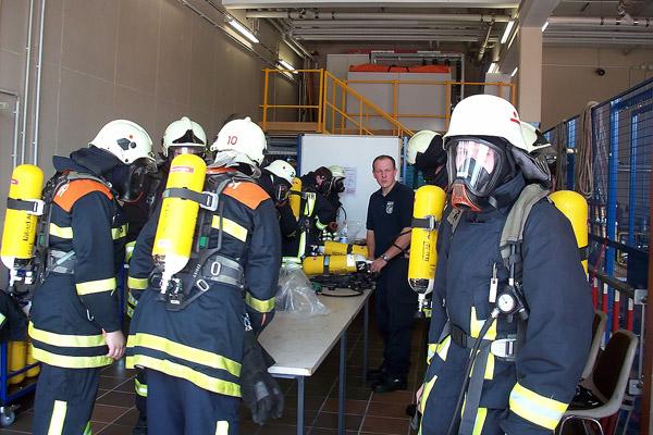 Gleich am ersten Tag gab es zu Beginn eine "heiße Begegnung": Mit und ohne Schutzkleidung konnte am eigenen Körper erlebt werden, welche Temperaturen in einem Brandraum entstehen und um wieviel intensiver diese Hitze durch den bei Löscharbeiten entstehenden Wasserdampf wird. Überlebensnotwendiges Wissen, denn auch die gute Schutzkleidung der Feuerwehr hat ihre Grenzen. Diese kennenzulernen und Brandsituationen richtig einzuschätzen, war Ziel dieser Wärmegewöhnung.