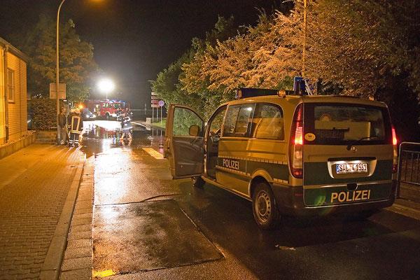 Lediglich zu einem Einsatz musste der Löschbezirk Eppelborn gegen 22:07 Uhr ausrücken: Schon wieder war wie schon wenige Tage zuvor die Straße "Am Kloster" in der Ortsmitte überflutet, weil Regenwasser aus einem Sammler durch die Regeneinlaufschächte zurückfloß und sich auf der Fahrbahn staute.