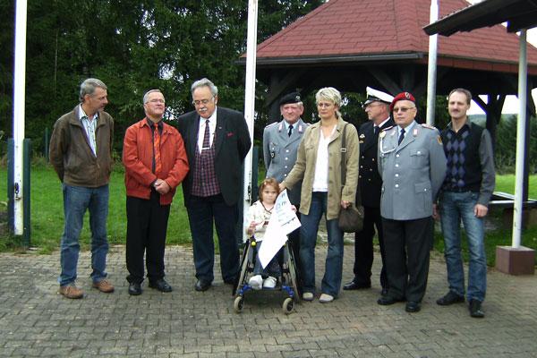 Zu diesem Fest waren alle Einwohner recht herzlich eingeladen und kamen auch in großer Zahl. Denn die 7-jährige Lea kam mit einer Spina bifida („offener Rücken“), einem Hydrocephalus sowie einem vierfachen Herzfehler zur Welt. Sie musste bereits 14 Operationen ertragen und soll sich im nächsten Jahr wieder einer schwierigen Operation unterziehen. Sie ist an den Rollstuhl gebunden, eine Behandlung wird leider nur teilweise von der Krankenkasse übernommen und ist sehr kostenintensiv.