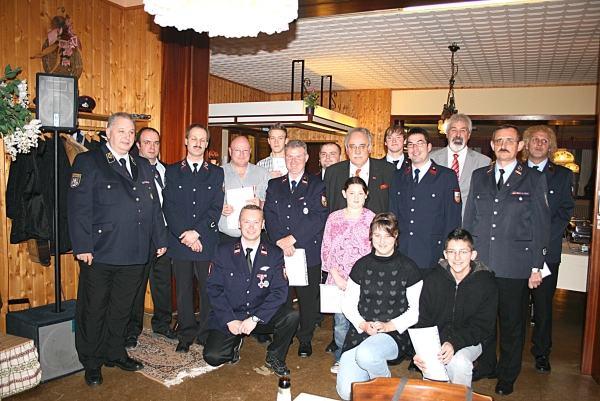 Nach weiteren Ansprachen des Bürgermeisters, des Kreisbrandinspekteurs, des Wehrführers und des Ortsvorstehers konnten zahlreiche Ehrungen und Beförderungen ausgesprochen werden.