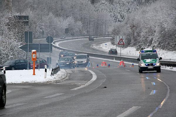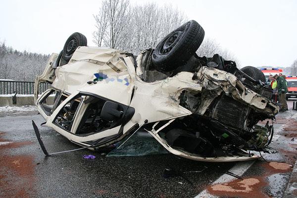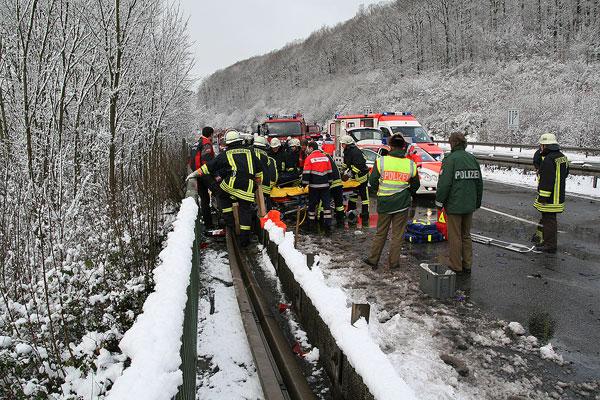 Beide Fahrzeuginsassen wurden zur weiteren Untersuchung und Behandlung in Krankenhäuser gebracht. Unfallursache war nach Angaben der Polizei nicht der plötzliche Wintereinbruch, sondern überhöhte Geschwindigkeit. An dem Fahrzeug entstand Totalschaden. Neben Feuerwehr und Polizei waren auch ein Notarzt und die Besatzung zweier Rettungswagen vor Ort im Einsatz.