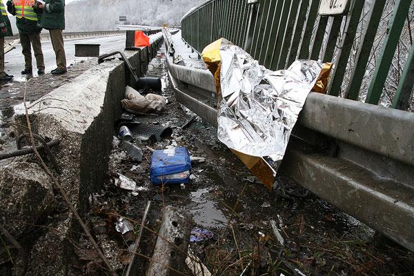 Eppelborn. In Höhe der Anschlussstelle Eppelborn ereignete sich gegen kurz vor zwölf Uhr Mittag am 22. November 2008 ein schwerer Verkehrsunfall: Ein mit zwei Personen besetzter Kleintransporter kam kurz vor der Autobahnbrücke über die B10 von der Fahrbahn ab und überschlug sich. Dabei wurde der 51-jährige Fahrer aus dem Fahrzeug geschleudert und mit schweren Verletzungen zwischen Beton der Brücke und Leitplanke eingeklemmt. Sein 24-jähriger Beifahrer konnte sich aus eigener Kraft mit leichten Verletzungen aus dem Wrack befreien.