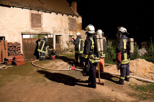 Bubach-Calmesweiler. Kurz nach Mitternacht bemerkten Anwohner eines Hauses am Brunnenplatz in Bubach-Calmesweiler intensiven Brandgeruch. Doch ein Feuer konnten sie nirgends entdecken. Vielmehr schien der Rauch aus einem Nachbargebäude durch das Mauerwerk ihres Hauses zu dringen. Da sie der Situation nicht trauten, riefen sie die Feuerwehr.