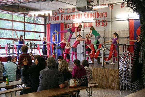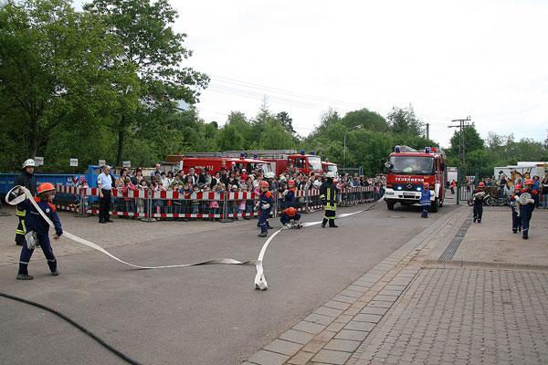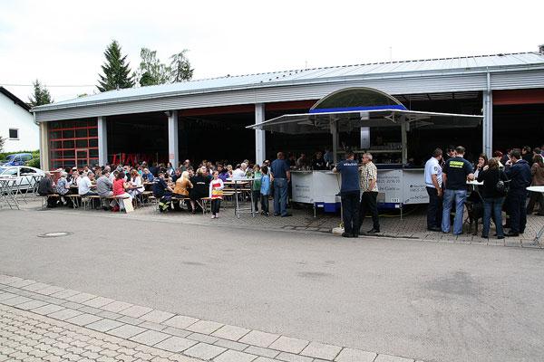 Auftakt zu den Festivitäten war das Dulles-Turnier am Freitag Abend, zu dem sich zahlreiche Teilnehmer gemeldet hatten. Am darauffolgenden Samstag hatte sich der Kindergarten angesagt: Nachdem die Brandschutzausbilder an zwei Terminen den Kindern im Kindergarten Wichtiges zum Umgang mit Feuer erzählt hatten, wollten sich die Kinder gemeinsam mit ihren Eltern die Feuerwehrfahrzeuge und Geräte ansehen.