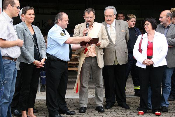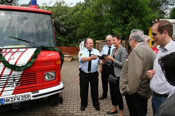 Bürgermeister Fritz-Hermann Lutz hat für den Umbau des Polizeifahrzeugs zum Feuerwehrmannschaftstransporters 2.500€ aus dem Gemeindehaushalt zur Verfügung gestellt.