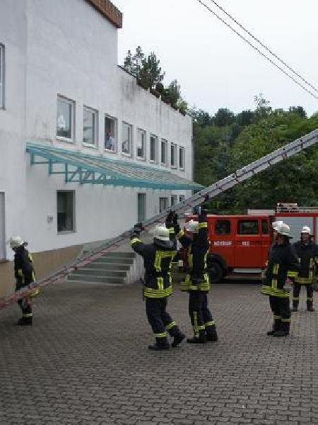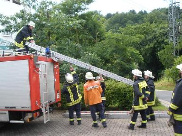 Eine Leiter ist im Brandfall der zweite Rettungsweg für die Bevölkerung und unser Fluchtweg im Ernstfall. In zwei Gruppen wurden zum einen die Steckleitern und zum anderen die 3-teilige Schiebeleiter eingesetzt.