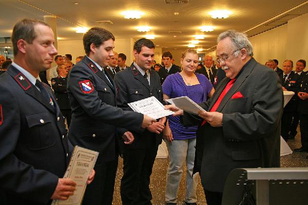 Allen geehrten Feuerwehrmännern und -frauen sprachen Bürgermeister Fritz-Hermann Lutz, Wehrführer Hermann-Josef Recktenwald, Kreisbrandinspekteur Werner Thom und der Landesbrandinspekteur Bernd Becker, sowie zahlreiche Ortsvorsteher ihren besonderen Dank aus für die vielen ehrenamtlichen Einsätze, die die Wehrleute geleistet haben und noch leisten werden. "Es wird viel vom Ehrenamt geredet, Ihr lebt dieses Ehrenamt. Wenn Ihr gebraucht werdet, seid Ihr zur Stelle" erinnerte Wehrführer Recktenwald in seinen Dankesworten.
