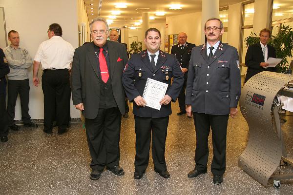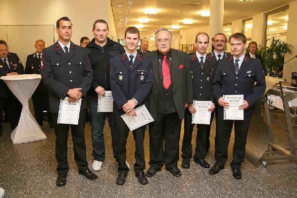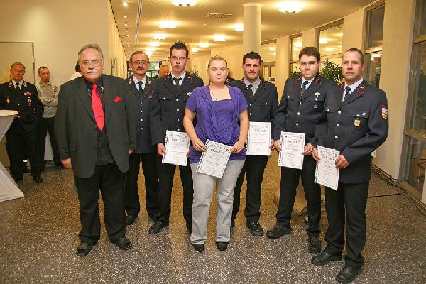 6 weitere Feuerwehrleute sind jetzt im Rang des Löschmeisters. Andreas Groß, stellvertretender Löschbezirksführer in Bubach-Calmesweiler wurde zum Oberlöschmeister befördert. An Sascha Müller, Oliver Rau und Bernd Erberich konnte Lutz die Urkunde zum Hauptlöschmeister überreichen. Und Patrick Behr, ebenfalls neu gewählter Stellvertreter des Löschbezirksführers in Humes wurde zum Brandmeister befördert.