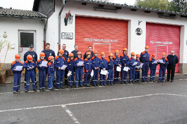 Alle 16 Teilnehmer haben somit die Prüfung zur Jugendflamme der Stufe I erfolgreich bestanden und haben sich damit ihre erste Feuerwehrauszeichnung verdient.