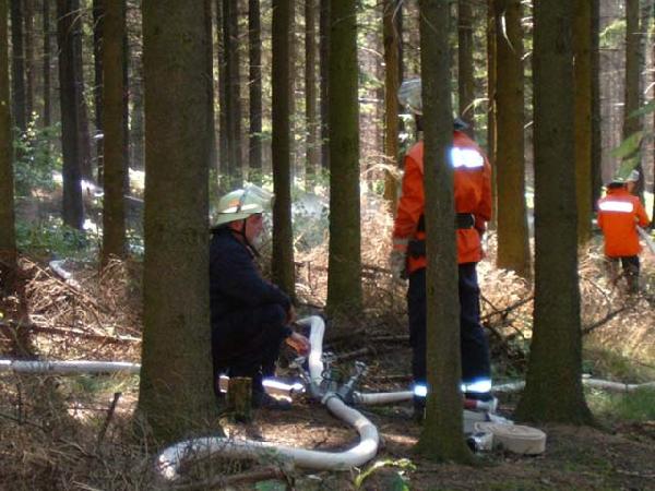 Um für den Fall der Fälle vorbereitet zu sein, führt der Löschbezirk Eppelborn in jedem Jahr eine gesonderte Waldbrandübung durch. In diesem Jahr wurde in dem Waldgebiet am psychiatrischen Pflegeheim im Ortsteil Habach geübt. Das Löschwasser musste mit Verstärkerpumpen über lange Wegestrecken gefördert werden und der Umgang mit der Motorsäge konnte trainiert werden, was bei den sommerlichen Temperaturen eine schweißtreibende Angelegenheit wurde.