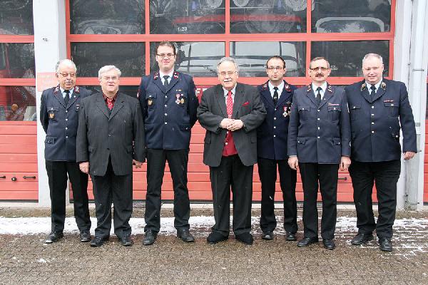 Wehrführer Hermann Josef Recktenwald, Ortsvorsteher Berthold Schmitt und Kreisbrandinspekteur Werner Thom gratulierten Frank Schwan zu seiner Wahl und wünschten ihm viel Erfolg bei seiner neuen Aufgabe.