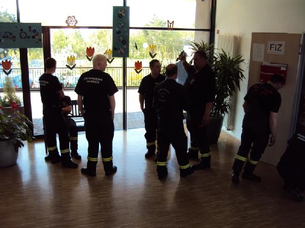 In Gruppen aufgeteilt, wurde ein Rundgang durchgeführt. Dabei wurden sämtliche wichtige Wegepunkte angesprochen und begutachtet, z.B. wo sich die Absperrventile der Gasleitung befinden oder wo der Hauptwasserhahn für die Versorgung des "Feuerwehrhydranten" liegt. Es wurde auch nochmal darauf hingewiesen das sämtliche Oberflurhydranten, die sich auf dem Gelände befinden, nicht mehr einsatzbereit sind.