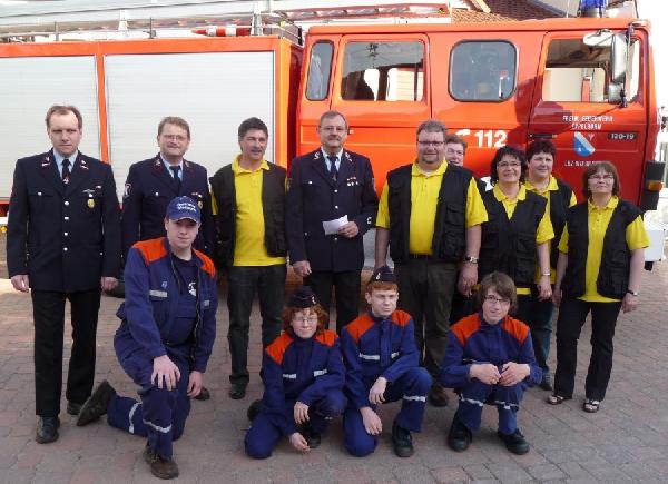 Aus diesem Anlass heraus trafen sich am 28.04.10 im Gerätehaus der Freiwilligen Feuerwehr eine Delegation des Organisationskomitees, bestehend aus I. und R. König, A. Peter, D. und P. Gros, J. Herrmann mit der Löschbezirksführung G. Neu, R. Raber und Vertretern der Jugendfeuerwehr. Dank der erfolgreichen Veranstaltung konnte ein Betrag von 500 € zur Nachwuchsförderung überreicht werden.