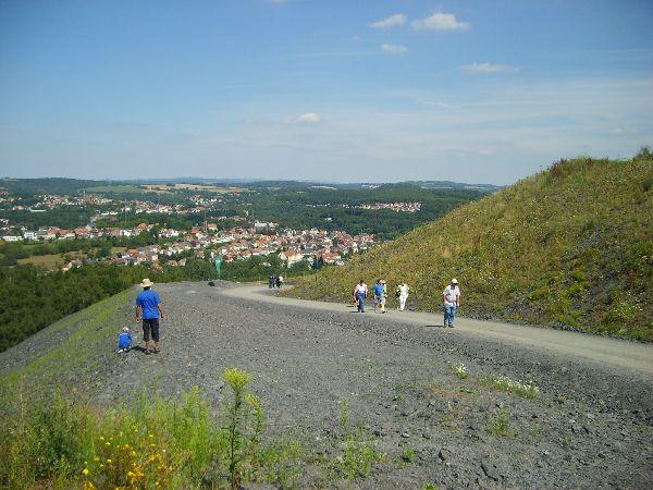Das vordergründige Ziel war das Erklimmen der Sommeralm in Landsweiler bei Neunkirchen. Die Sommeralm, eine riesige Schlackenhalde, direkt neben dem Gondwana-Park, hat eine stattliche Höhe von der aus man über das Ganze Saarland blicken kann. Gemeinsam erklommen wir die Anhöhe bei einem ganz tollen, warmen Wetter. Oben angekommen hatten wir schon Risse im Gesicht, so ausgetrocknet waren wir. Diese Risse ließen sich aber problemlos schließen durch Zuführung von feinstem Weizen- und Pilsbier. Innerhalb kurzer Zeit war der Wasserhaushalt wieder hergestellt und unsere Gäste, sowie auch wir waren begeistert von der Idee der saarländischen Sommeralm.