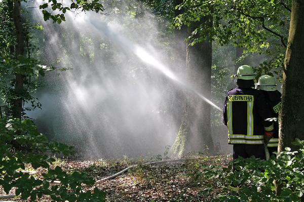 Rauchpatronen wiesen den ersten eintreffenden Kräften den Weg zur Einsatzstelle. Ein Feuer im Unterholz am Waldrand galt es zu bekämpfen, weit ab von jeder Wasserversorgung. Und gleich war klar: Die 2.800 Liter Wasser, die das Tanklöschfahrzeug mitführt, würden nicht ausreichen, um den Brand zu bekämpfen.