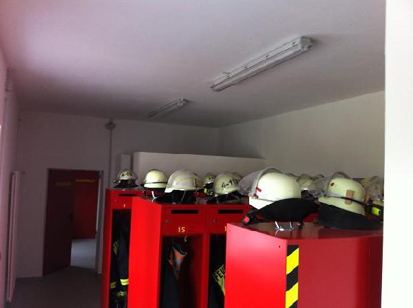 Vorher waren die Einsatzuniformen an einem persönlichen Haken direkt an den Wänden der Fahrzeughalle zu finden und wurden so ständig schädlichen Stoffen (Abgase) ausgesetzt.