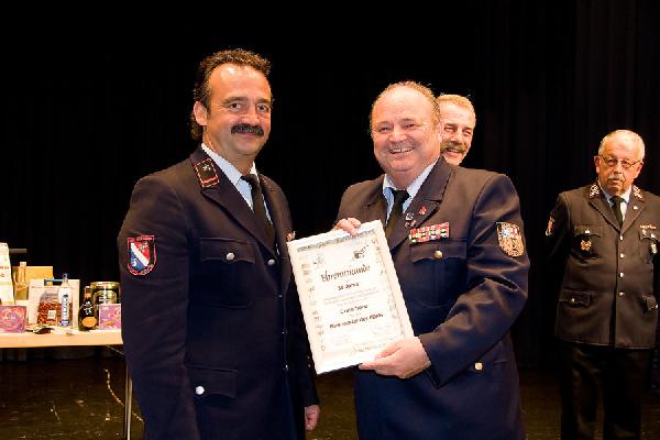 Dass der Familienabend ein besonderer Anlass ist, danke zu sagen, wusste auch Ortsvorsteher Berthold Schmitt zu berichten. "Es ist keine jährliche Routine, sondern ein inneres Anliegen, recht herzlich zu danken", so der Ortsvorsteher. Denn die Feuerwehrarbeit sein nicht ohne Gefahr für Leib und Leben und deshalb nicht mit anderen Ehrenämtern zu vergleichen, die oft in der Öffentlichkeit gelobt werden.