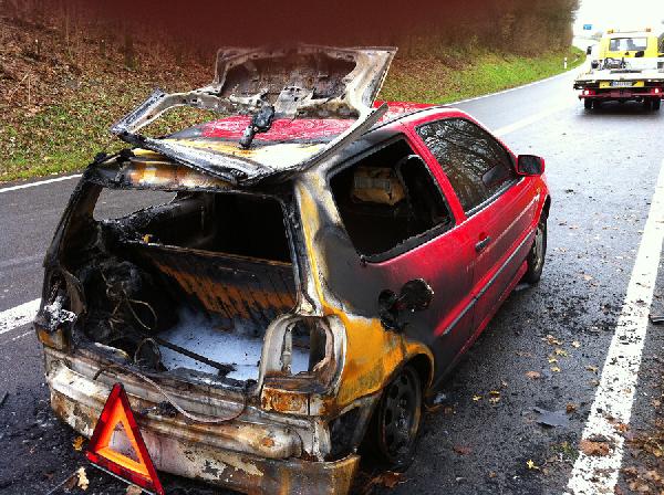 Gegen 18:18 Uhr wurden der Löschbezirk Eppelborn und die Feuerwehr aus Bergweiler zu dem Fahrzeugbrand alarmiert. Beim Eintreffen der Einsatzkräfte brannte das Fahrzeug im Heckbereich, der Fahrer hatte das Fahrzeug verlassen können.