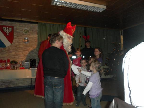 Nachdem alle gesättigt waren kam unangekündigter Besuch zu uns: Es war der heilige St. Nikolaus mit einem großen Sack voller Geschenke. Als er einigen Kameraden dir Ohren lang gezogen hatte, gab es für die anwesenden Kinder Geschenk, sofern sie ihm ein Gedicht aufsagen konnten. Am Ende erhielt doch jedes Kind ein Geschenk vom Nikolaus. Ebenso gab es ein kleines Geschenk für die Kameraden der Alterswehr sowie für die Partnerinnen der gesamten Kameradschaft.