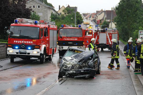 Eppelborn. Am 20. Juni 2011 ereignete sich gegen Mittag am Ortsausgang von Eppelborn in Richtung Dirmingen ein schwerer Verkehrsunfall: Der Fahrer eines aus Richtung Dirmingen kommenden VW Golf kam aus noch ungeklärter Ursache auf regennasser Fahrbahn von der Straße ab.