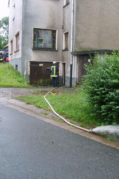 Gegen 13:00 Uhr, kurz nach Beginn der Regenfälle, wurde der Feuerwehr gemeldet, dass die Straße "Am Kloster" überflutet ist. Die Feuerwehr öffnete dort die Kanaleinläufe, um mehr Regenwasser ablaufen zu lassen und reinigte anschließend die Straße.