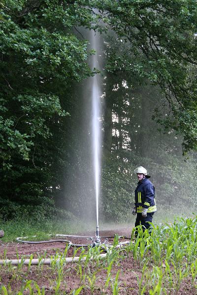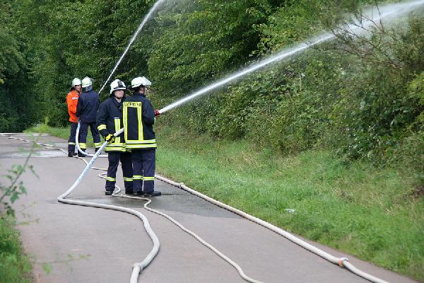Eppelborn. Wasserversorgung weit abseits von Hydranten und offenen Gewässern lautete die Hauptaufgabe bei der diesjährigen "Drei-Landkreis-Übung" in Eppelborn, an der Feuerwehren aus den drei Landkreisen Neunkirchen, Saarlouis und St. Wendel teilnahmen. Dazu wurde ein Waldbrand in der Verlängerung der Galgenbergstraße nahe der Autobahn A1 angenommen.