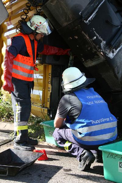 | Eingesetzte Fahrzeuge: | Bergungsunternehmen (), Landesumweltamt (), Rettungswagen (), Polizei (), Havariekommissariat (), KdoW Wehrführer (03), ELW (1-11), MTF (1-18), TLF 16/25 (1-23), LF 16 TS (1-44), RW 1 (1-51), LF 16 TS (2-44), HLF 8/12 (2-45) |