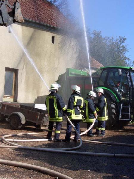135 Einsatzkräfte waren vor Ort und löschten den inzwischen auf weitere Gebäudeteile übergesprungenen Großbrandes. Da die Löschwasserversorgung aus Hydranten in diesem Ortsteil für ein Ereignis dieser Größenordnung nicht ausreicht, musste das Löschwasser aus Fischweihern über lange Wegestrecken zur Einsatzstelle gefördert werden. Der Löschbezirk Wiesbach war nicht in die Übung eingebunden, sondern stellte den Brandschutz für die Großgemeinde während der Übung sicher.
