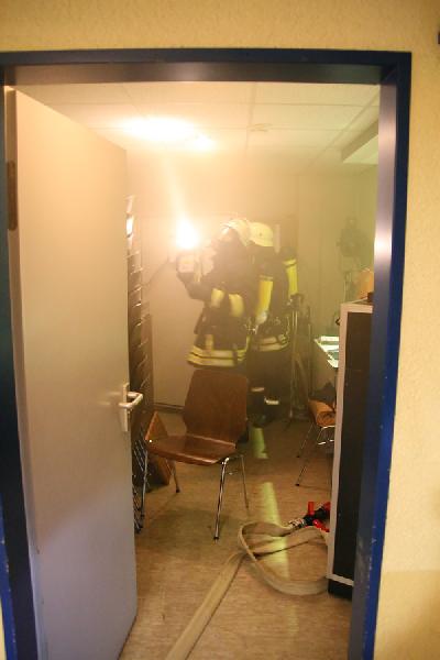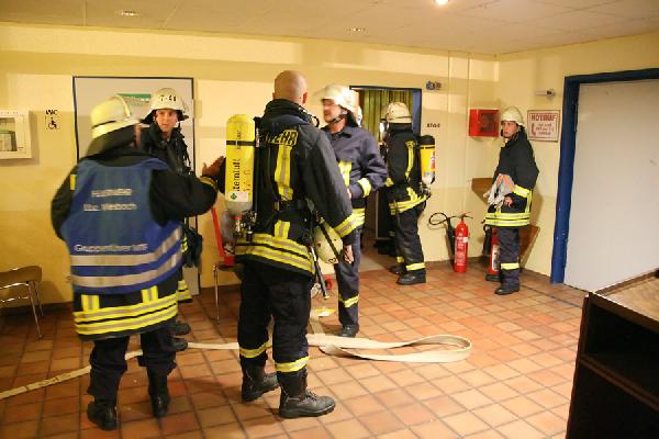Gegen 21:11 Uhr wurden die Löschbezirke Wiesbach und Habach durch die Kreisalarmzentrale in Neunkirchen alarmiert. Die ersten Einsatzkräfte trafen kurz darauf bereits an der nur wenige Meter vom Gerätehaus in Wiesbach entfernten Einsatzstelle ein. Schnell bestätigte sich, dass der Grund für die Rauchentwicklung in einem abgegrenzten Nebenraum der Halle zu suchen war. Unter schwerem Atemschutz erkundeten die Einsatzkräfte die Lage in dem komplett verqualmten Raum.