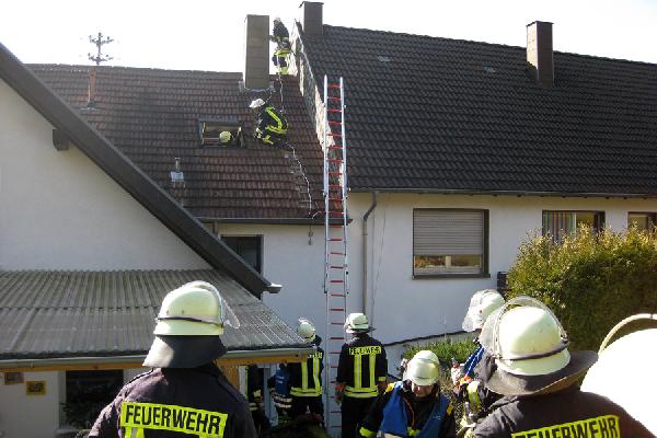 Beim Eintreffen der gegen 12:16 Uhr alarmierten Einsatzkräfte der Feuerwehr war nur eine leichte Rauchentwicklung aus dem Schornstein im Aussenbereich feststellbar. Doch aus der Feuerstelle und einer Reinigungsöffnung im Dachgeschoss drang starker Rauch. Die Feuerwehr kontrollierte den Kaminverlauf mit der Wärmebildkamera und zog den Bezirksschonsteinfeger hinzu. Bei der Erkundung zeigte sich, dass der Kamin im gesamten Verlauf brannte, insbesondere jedoch im Bereich des Dachgeschosses.