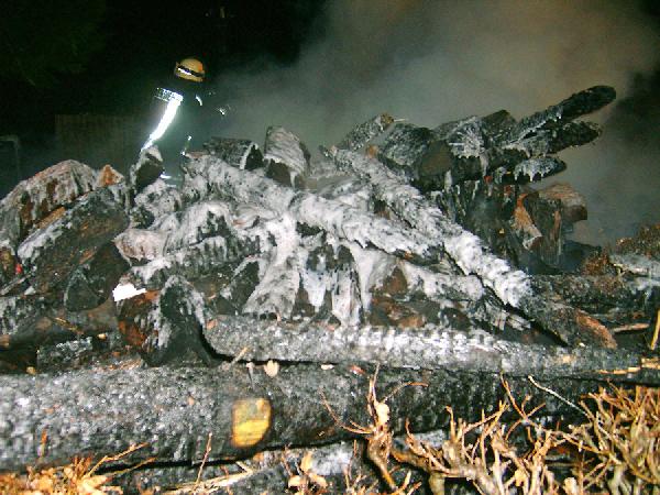 Mit Wasser und Löschschaum bekämpften die Einsatzkräfte das Feuer. Doch trotz des sofortigen Löscheinsatzes brannte der Unterstand völlig nieder. Wegen der starken Rauchentwicklung mussten die Arbeiten zum Teil unter Atemschutzeinsatz durchgeführt werden.
