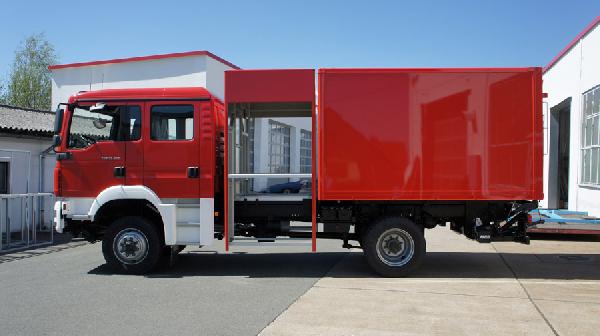 Das Fahrgestell kommt von der Firma MAN, die feuerwehrtechnische Beladung liefert die Firma C/E/R aus Blieskastel, der Fahrzeugaufbau wird von der Firma IVECO-MAGIRUS gefertigt.