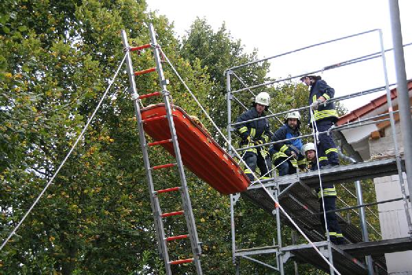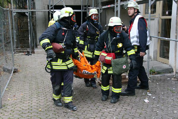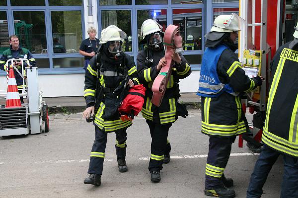 Das Szenario: In Folge von Bauarbeiten am Dach der Kindertagesstätte war es zu einem Brand mit starker Verrauchung des gesamten Gebäudes gekommen. Eine unbekannte Anzahl an Personen sollen sich noch in dem Gebäude befinden. Nachdem sich die ersten Helfer einen Überblick über die Lage verschafft haben, ist klar: Weitere Kräfte müssen zur Unterstützung angefordert werden.