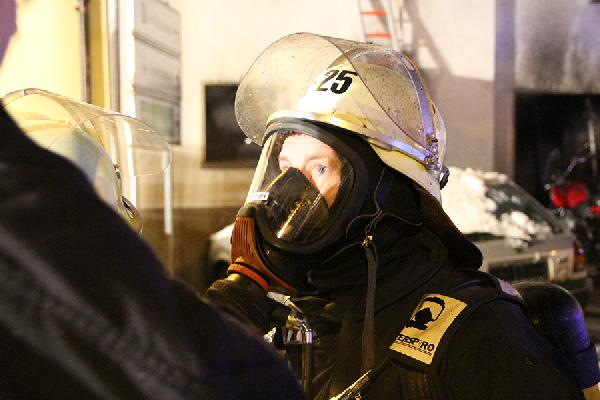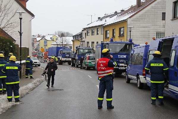 Das Feuer konnte durch mehrere Trupps, die unter Atemschutz in das Gebäude vordrangen, schnell gelöscht werden. Nachdem das Gebäude mit der Wärmebildkamera abgesucht worden war und feststand, dass sich keine weitere Person mehr in dem Gebäude aufhält, wurden alle Einsatzkräfte aus dem Gebäude abgezogen. Denn die Gefahr für die Einsatzkräfte war zu groß: In der Fassade des Wohnhauses klafften nach der Explosion etwa handbreite Risse im Mauerwerk. Schnell war klar, dass hier akute Einsturzgefahr bestand.