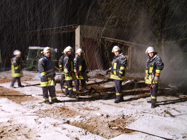Da die Einsatzstelle eigentlich im Zuständigkeitsbereich der Stadt Lebach lag, wurde über die Kreisalarmzentrale Saarlouis der Lebacher Wehrführer über den Einsatz informiert. Wegen der einbrechenden Dunkelheit wurde die Einsatzstelle ausgeleuchtet und das Feuer mit einem C-Rohr gelöscht. Dabei behinderte einsetzendes Schneetreiben die Arbeit der Einsatzkräfte.